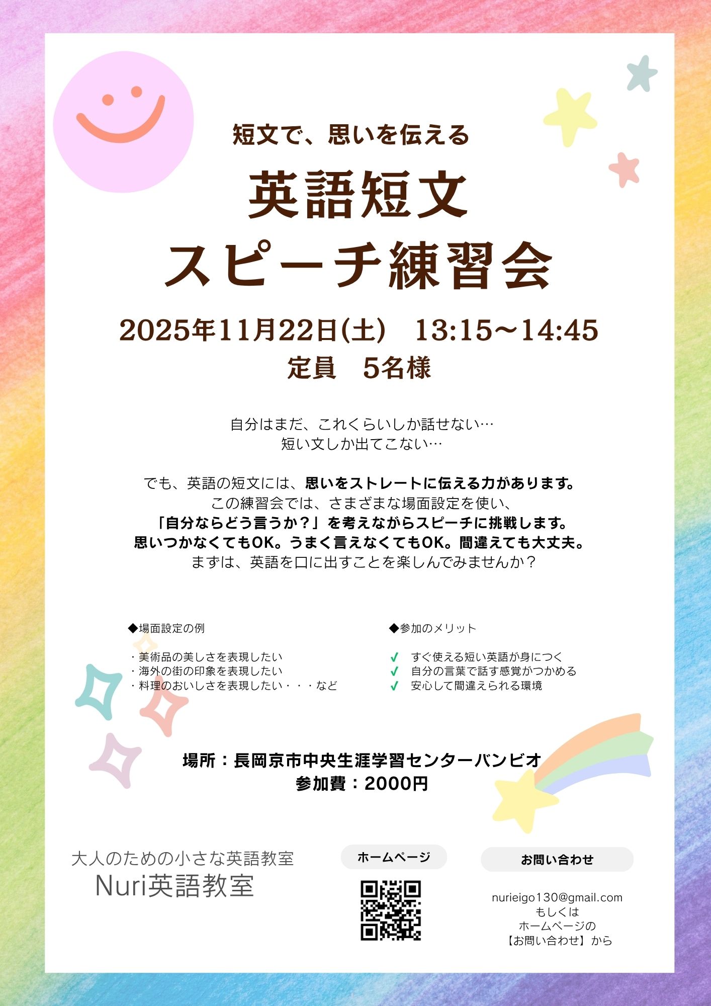 長岡京市近郊の皆様へ 英語短文スピーチ練習会のお知らせ